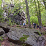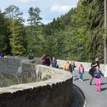 Auch wenn am Morgen noch Regenwolken durchgezogen waren, riss der Himmel pünktlich zum Start unserer Wanderung auf. Von unserem Treffpunkt - in der Nähe des Schlosses Wolkenstein - stiegen wir erst einmal hinab in Richtung Bahnhof. Dabei kamen wir an der Wolfsschlucht - zum Glück ohne Wolf - vorbei. Der 'alpine' Wanderweg führte uns dann zum ersten Mal bergan. Aber alle kleinen und großen WIESEL meisterten diese Herausforderung ohne Probleme.