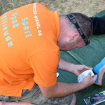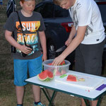 wurden die vom Zeltproduzenten vorgesehenen Aufbauzeiten wieder gnadenlos überschritten. Aber egal, bei über 30° C muss man viele Trinkpausen machen. Einige vor allem jungeTeilnehmer hatten