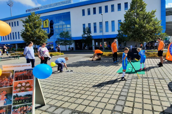 Bei bestem Wetter präsentierten wir unseren Verein heute auf der SPORTY-Meile im Rahmen von SPORTS UNITED vor dem eins-Stadion an der Gellertstraße. Dabei konnten die kleinen und großen Besucher an unserem Stand Cornhole, Floorball-Zielschießen und Wurf-Dart ausprobieren.